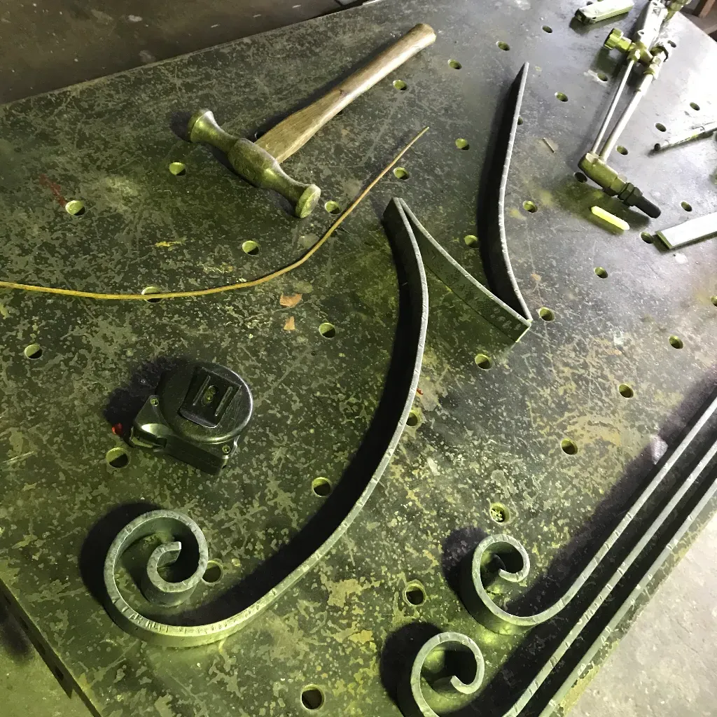 外の石畳みに手摺りの製作をしました。